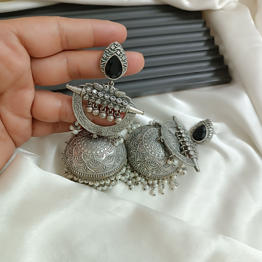 Discover the exquisite collection of Silver look-alike earrings at Jewel Studio Komell, crafted with a stunning silver finish that exudes elegance. Perfect for ethnic wear, they add an authentic charm to your ensemble. Enhance your look with the ethnic charm that seamlessly complements all color palettes of your outfit, ensuring versatility and sophistication.
