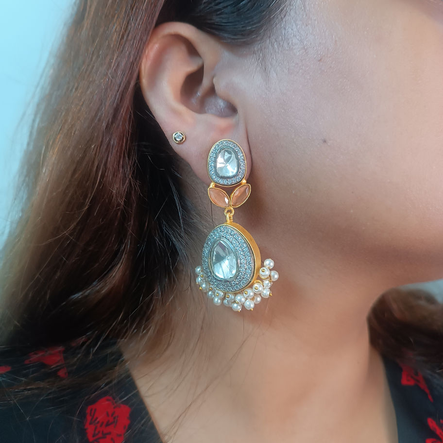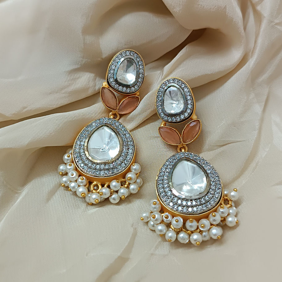 Kundan Orange Peach Stone Dangler Earring
