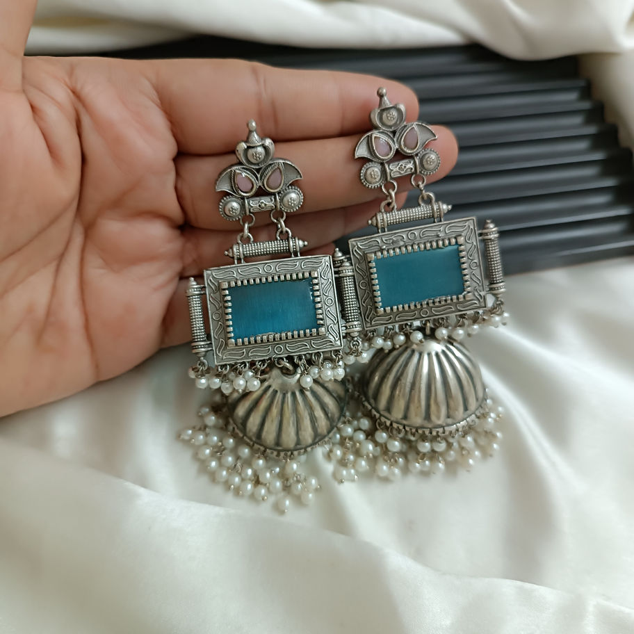 Discover the exquisite collection of Silver look-alike earrings at Jewel Studio Komell, crafted with a stunning silver finish that exudes elegance. Perfect for ethnic wear, they add an authentic charm to your ensemble. Enhance your look with the ethnic charm that seamlessly complements all color palettes of your outfit, ensuring versatility and sophistication.