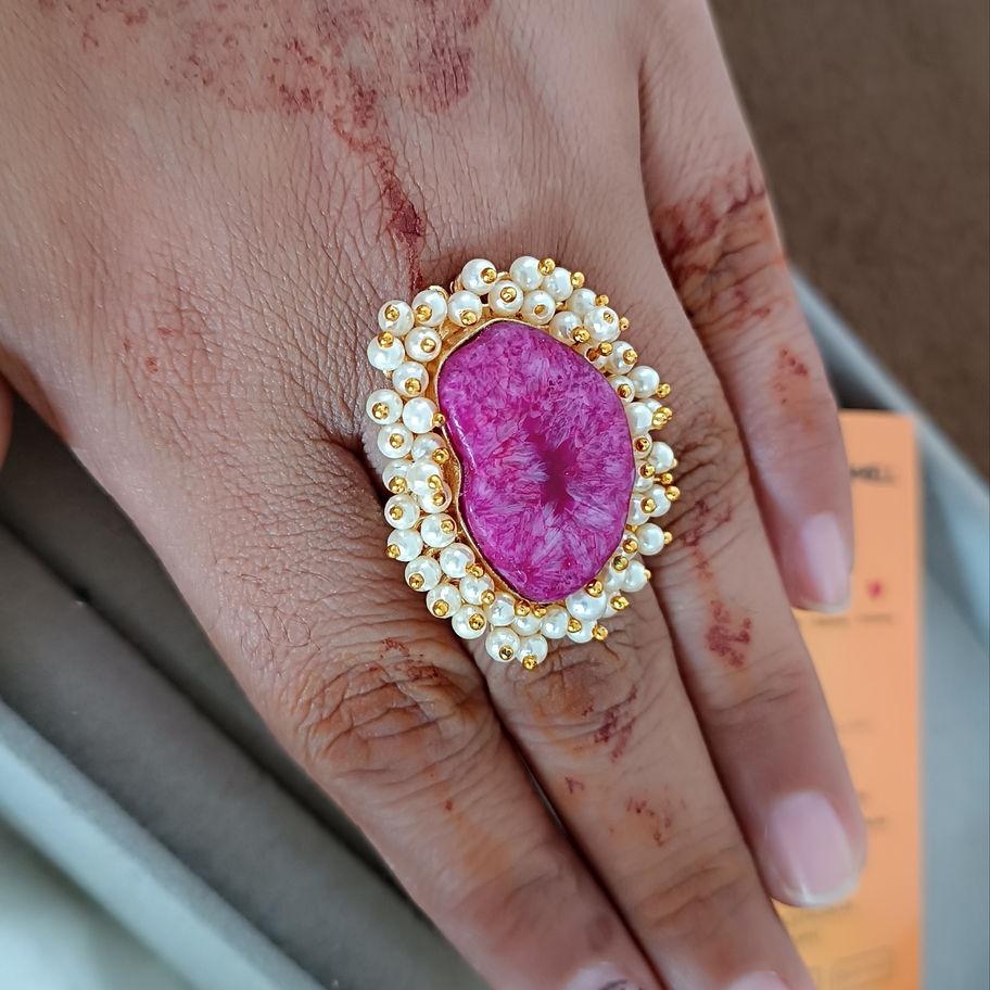 Purple Stone with Pearl Ring