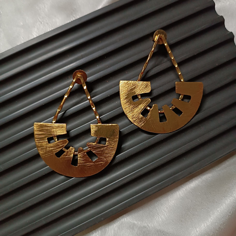 Saba Golden Dangler from Jewel Studio Komell exemplifies elegance and sophistication with its lightweight design and exquisite gold finish. Perfect for any occasion, these danglers promise a touch of class without compromising on comfort.