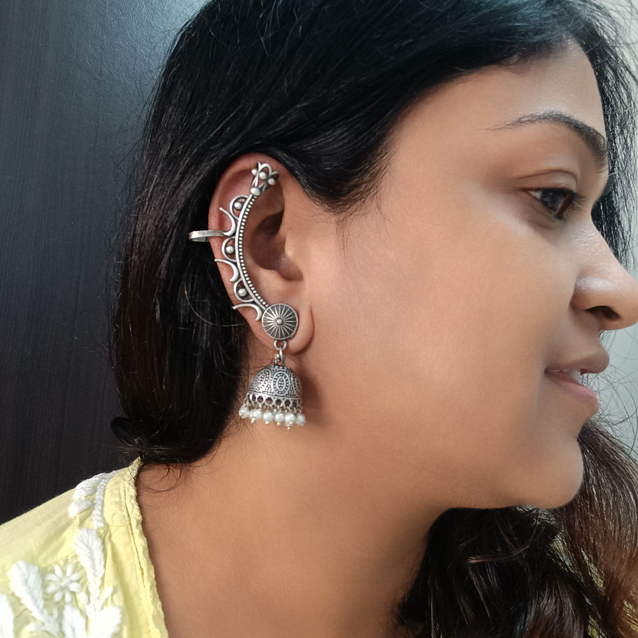 Discover the exquisite collection of Silver look-alike earrings at Jewel Studio Komell, crafted with a stunning silver finish that exudes elegance. Perfect for ethnic wear, they add an authentic charm to your ensemble. Enhance your look with the ethnic charm that seamlessly complements all color palettes of your outfit, ensuring versatility and sophistication.