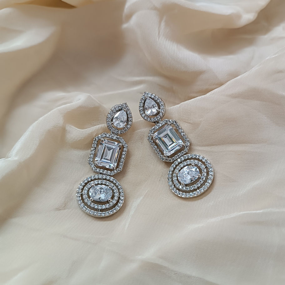 Elevate your elegance with exquisite American Diamond Earring. These premium-quality statement pieces seamlessly blend with ethnic outfit with sophisticated style. Discover unmatched craftsmanship and timeless beauty with our finest jewellery collection.