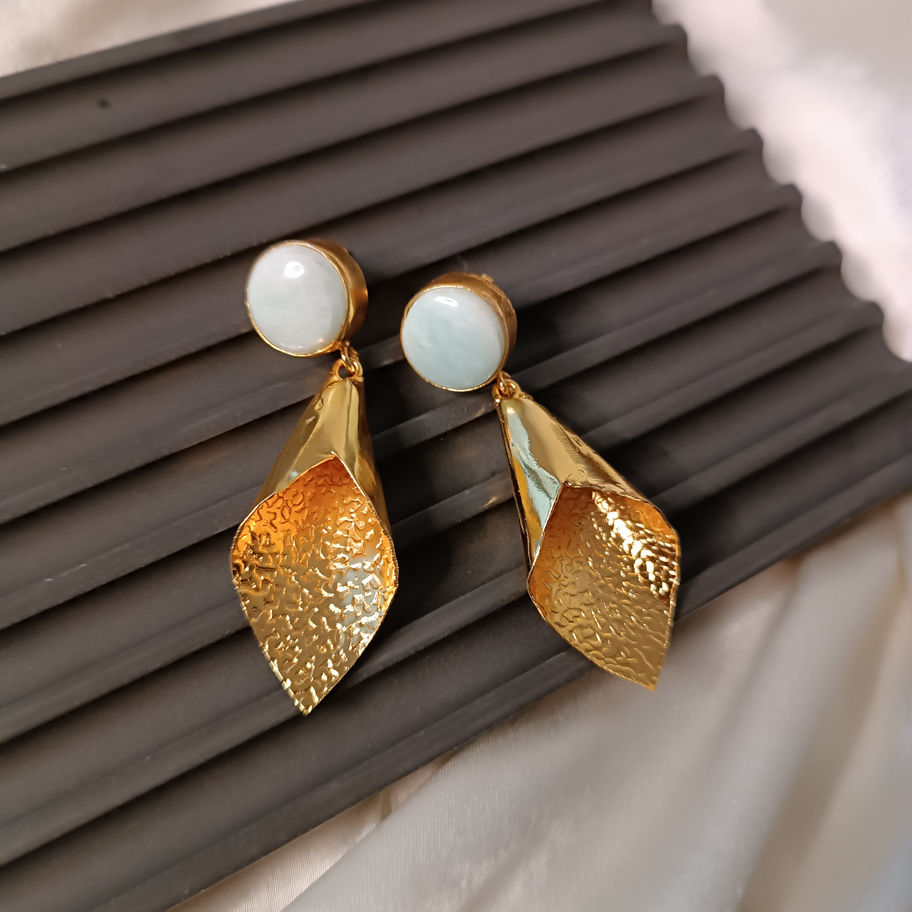 With a stone stud and a softly hammered gold drop, they add just the right amount of elegance without feeling heavy. Easy to wear, easy to style — from work meetings to weddings, from kurtas to dresses.